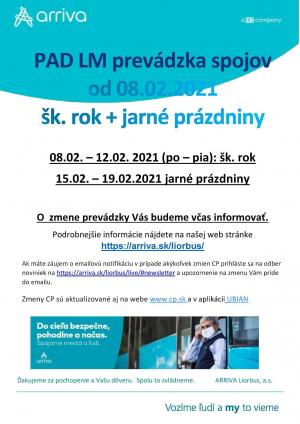 Prevádzka autobusových spojov v obci od 08.02.2021 + jarné prázdniny.