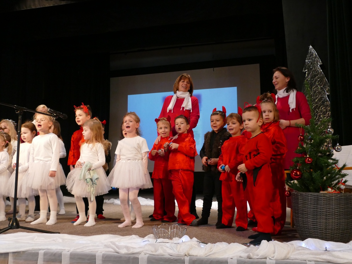 Vianočný koncert detí i žiakov zostavený z kolied, tancovania, scénok rovnako potešil veľkých ako malých. Najmenší sa premenili na anjelikov, čo pomáhali ľuďom. Čertíci šantili, no nikto sa nebál. Školáci ponúkli koledy, rytmické tance a pôsobivé scénky o škole v čase Vianoc. Rodičia zas pripravili vianočné trhy a výťažok dodali na aktivity našich škôl.
