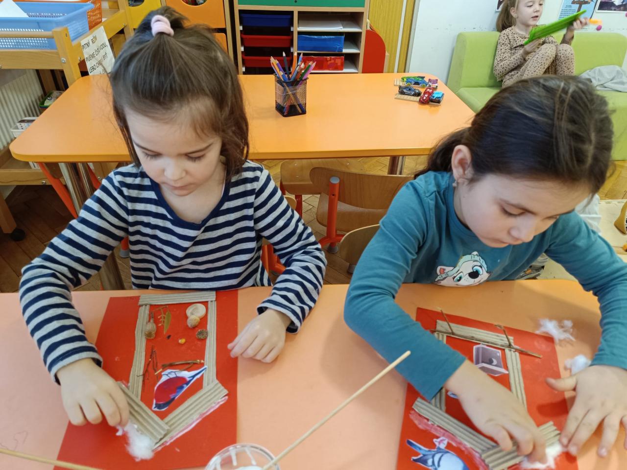 Jednou z pravidelných týždenných tém boli zvieratá a vtáčiky v zime. Spojili sme to s rozprávaním sa, tvorbou a prípravou ukážok, aké búdky raz postavíme. A dlho sme nečakali, zopár sme pripravili z dostupných materiálov a umiestnili na stromy v našej záhrade.