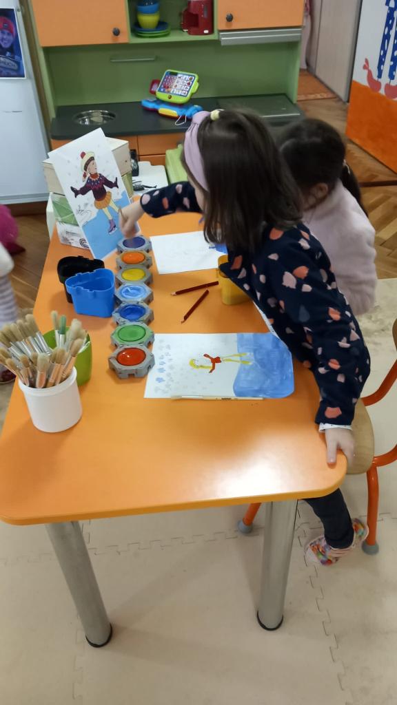 Potom sme skúsili niečo netradičné. Skúsili sme premalovať sneh. Ale asi sa nám aj tak najviac páčil biely.