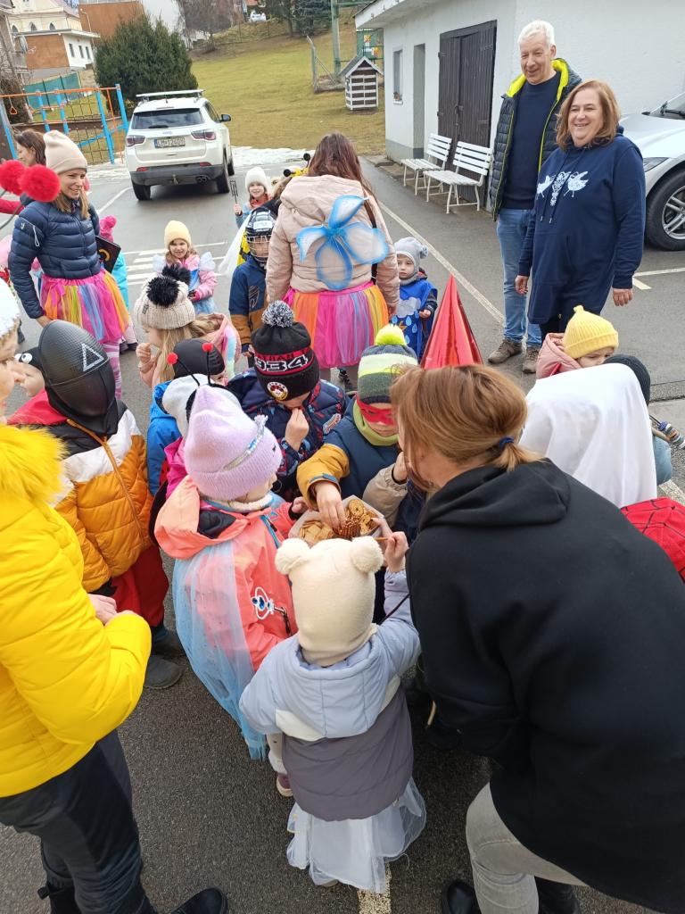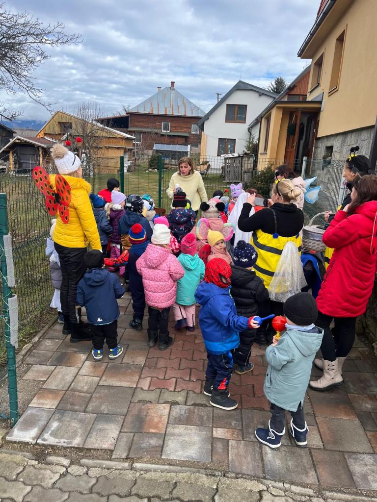 Február je neodmysliteľne spojený s plesmi a karnevalmi. My sme sa rozhodli oživiť tradície a vybrali sme sa priamo do dediny. S piesňou na perách a tradičným pozdravom "Gazdiná, dovolíte s Homrľajom ?" sme roznášali dobrú náladu a úsmev medzi susedov. Veselicu sme zavŕšili priamo v škôlke poriadnou detskou diskotékou, kde sa vybláznili všetky masky od výmyslu sveta.