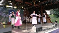 V scénickom programe Susedia zhora i zdola na 12. ročníku Dní matky v Liptovských Sliačoch Poludnica uviedla choreografiu Na porubskej zábave. (Foto: Stanislav Kuzma)