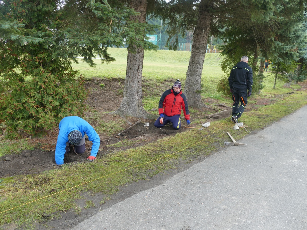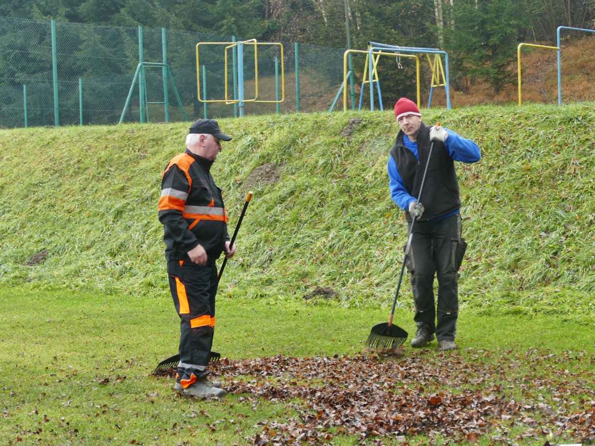 Aj preto sa v sobotu 14. novembra 2025 zišla skupina ochotných členov, aby sa pustila do výraznej úpravy športoviska. Najskôr vyhrabali a odviezli napadané lístie. Potom spoločne odstránili amortizovaný plot na západnej strane ihriska a na jeho mieste vykopali základy pre nový, až 80-metrový úsek oplotenia.