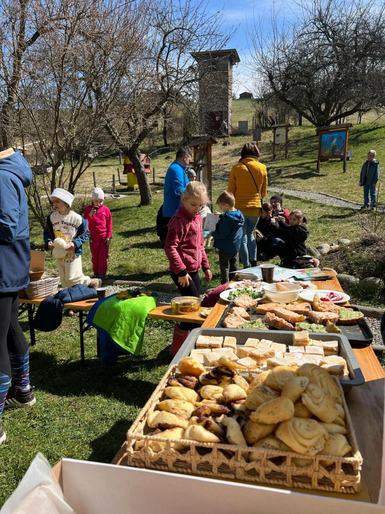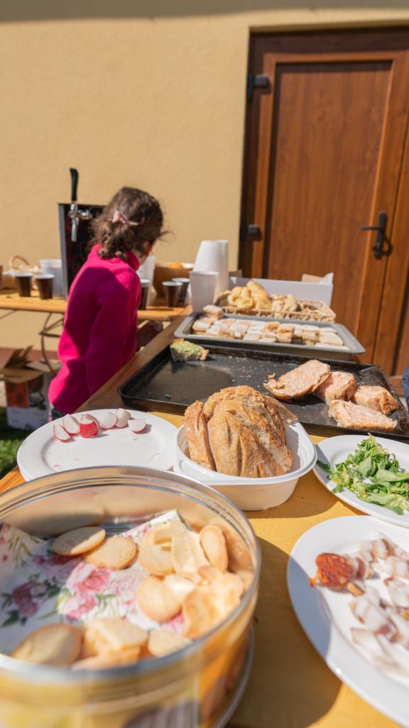 Za odmenu bolo pre všetkých dobrovoľníkov pripravené občerstvenie na nový spôsob - ako porubská špajza. Domáci chlebík sme dostali z Momentu, porubské pomazánky, koláče a pečivo pripravili spoločne občania a dievčatá z Epicentra. Kofolu a pivko dodal Liptovar.