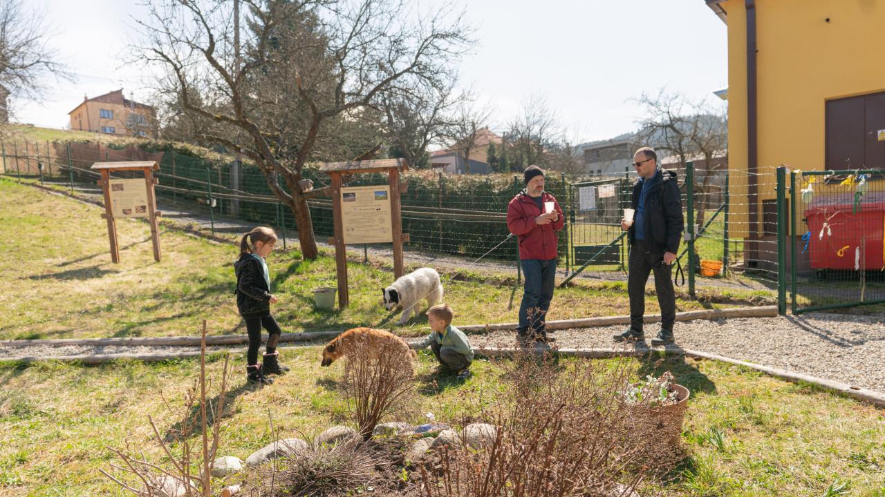 Stretli sme sa v strede našej obce, kde sa postupne tvorí akési ,,nádvorie’’. Včelnica nám poskytla zázemie a pohodu počas slnečného dňa. Deti dobili baterky jedlom a mohli sa spoločne vyšantiť či kresliť si. Envipak dodal za vrecia na odpad aj omalovánky.