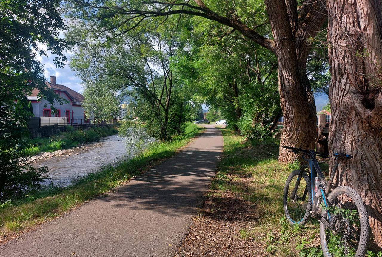Ľupčianka je v ústí doliny už mohutnejšia, tak som pohrdol brodom, vyššie je mostík, na gpx-ku tú zachádzočku vidno. Pred Vyšným Sliačom som ochutnal miestnu minerálku – fajná je. No do bidónu som radšej netankoval, to až ďalej takú normálnu vodu, z výdatného prameňa Očianka tesne nad Štiavnicou.