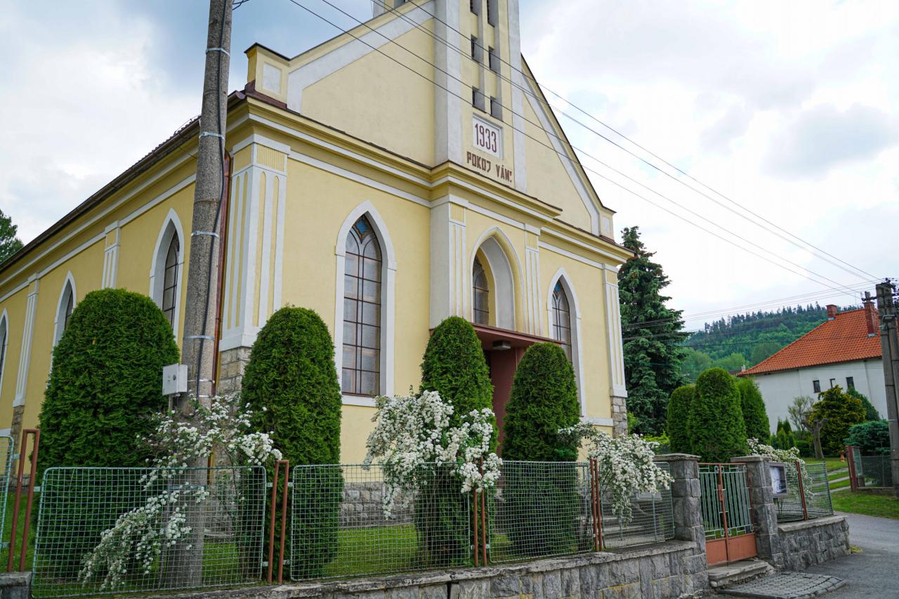 So stavbou sa začalo 13.3.1933, chrám posvätil 3.9.1933 ev. a. v. biskup V. P. Čobrda. Je postavený na mieste starého cintorína, nájdené kosti sú uložené pod oltárom. Stojí na mieste, na ktorom stála drevená ev. a. v. cirkevná škola a drevená zvonica. Neogotická stavba má pozdĺžny sieňový priestor s chórom, rovný strop a pristavenú sakristiu. Veža, vysoká 19 metrov, je bez zvonov.