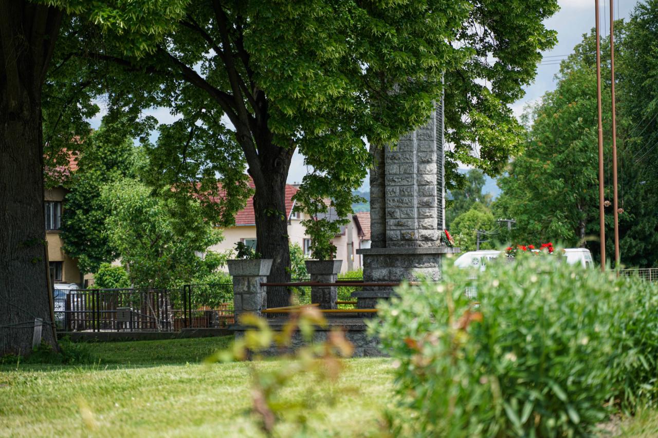 Pomník postavený v roku 1949 podľa projektu Jána Šúleka. Na čelnej strane sú umiestnené mramorové tabule s menami padlých občanov.