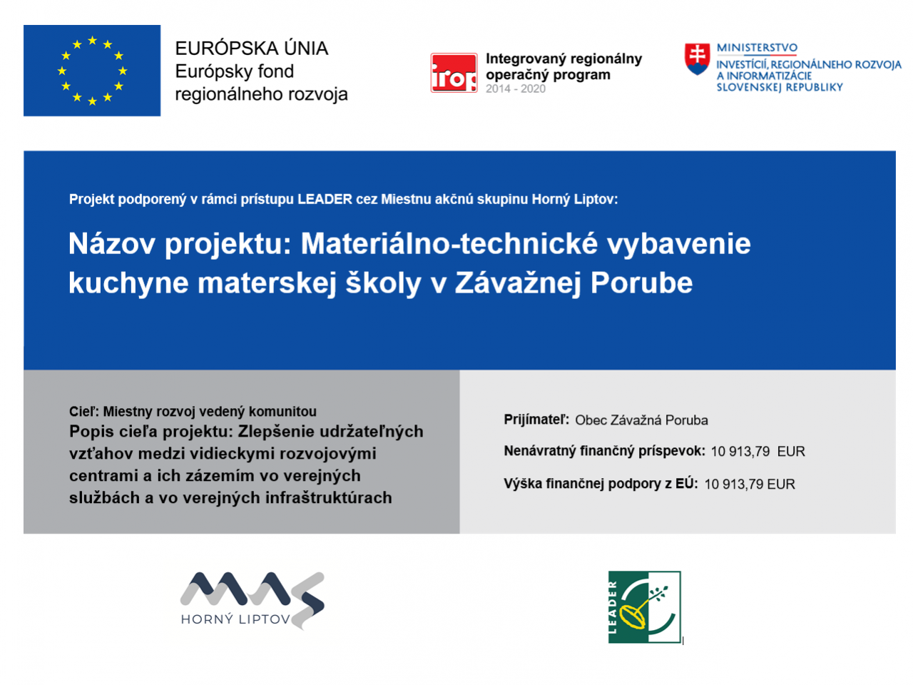 Názov projektu: Materiálno-technické vybavenie kuchyne materskej školy v Závažnej Porube